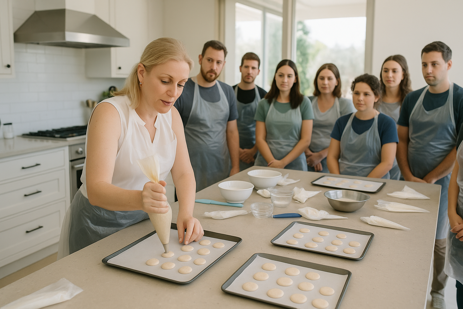 אני מאמינה בשילוב בין דיוק מקצועי, מדע האפייה והנאה גדולה: בכל מפגש לומדים שיטה ברורה, מקבלים מתכונים מסודרים, טיפים של מאסטרים והכוונה פרקטית שמבטיחה שתצליחו לשחזר את התוצאה בבית. מתאימה סדנאות לצוותים וחברות, ימי הולדת, מסיבות רווקות, משפחות וקבוצות פרטיות.